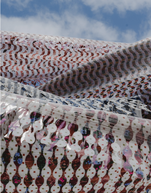 Prosojne ponjave so serija sedmih tekstilnih struktur, ki s plastenjem, gibanjem in prosojnostjo ustvarjajo občutek nove prostorskosti. S kombinacijo laminiranja in tkanja nastajajo raznoliki vizualni učinki – od subtilnih prehodov svetlobe do dinamičnih vzorcev, ki jih soustvarjajo tudi naravni elementi, kot so veter, svetloba in sence. Projekt je nastal v koprodukciji z Zavodom Carnica in bil predstavljen na Bienalu tekstilne umetnosti BIEN 2025 v Kranju.
