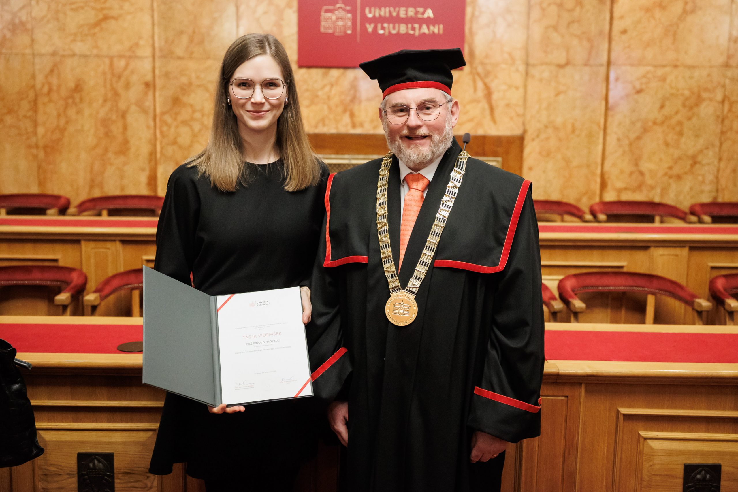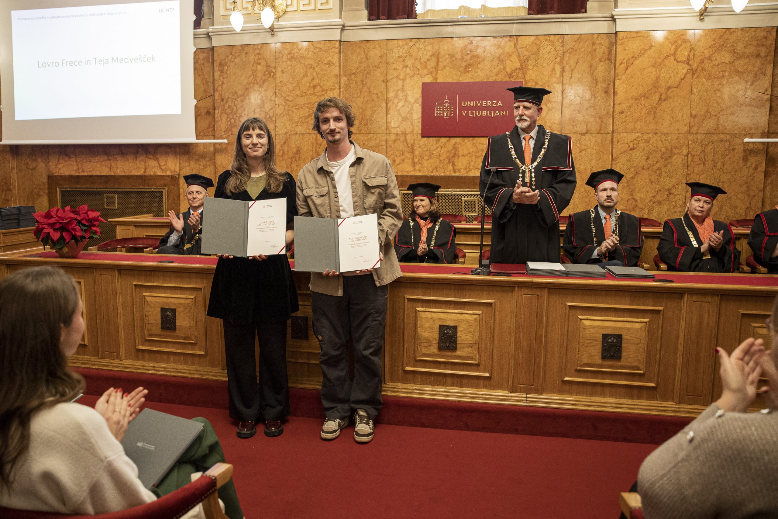 Na Univerzi v Ljubljani so v okviru Tedna Univerze med 8. 12. in 12. 12. 2025 med drugim podelili svečane listine za najboljše študijske dosežke, priznanja za dosežke in udejstvovanje na področju obštudijskih dejavnosti ter univerzitetne Prešernove nagrade.