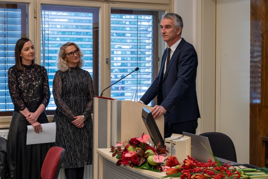 Prisotne je nagovoril dekan prof. dr. Andrej Šmuc, ki je poudaril pomen skupnosti, sodelovanja ter izjemnih posameznikov, ki s svojim znanjem in predanostjo soustvarjajo razvoj fakultete.