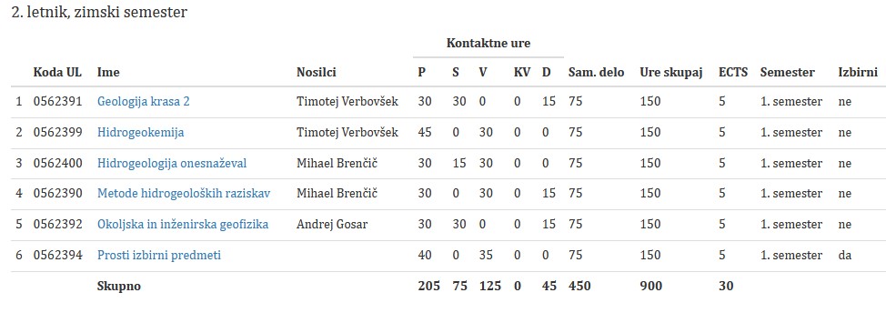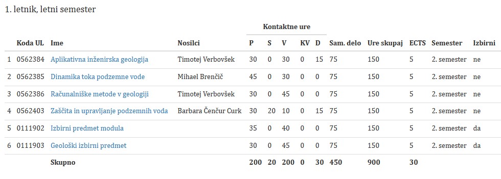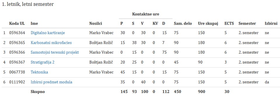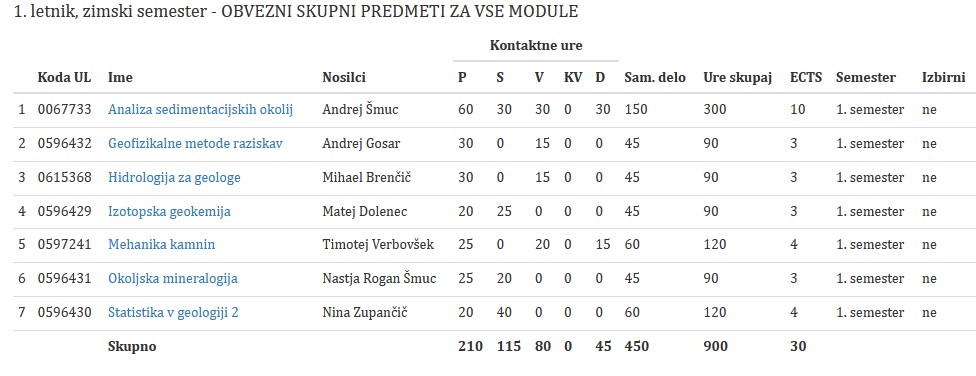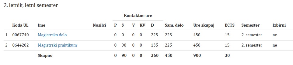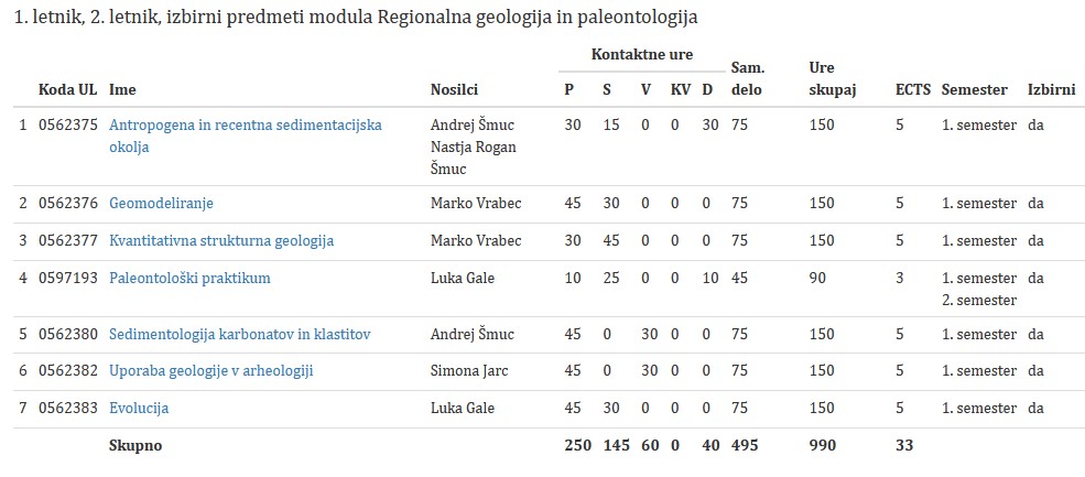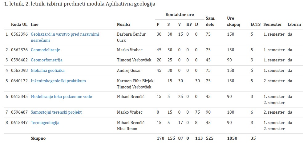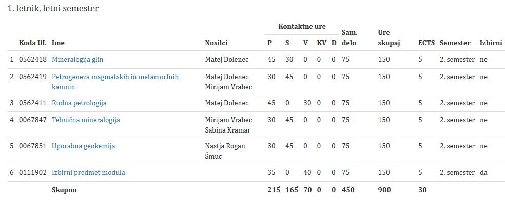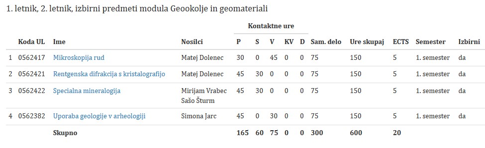 Prosti izbirni predmet študent lahko izbere izven modula, lahko pa tudi v drugih magistrskih programih ali iz nabora predmetov 1. stopenjskega študija na NTF, Univerzi v Ljubljani ali drugih univerzah.