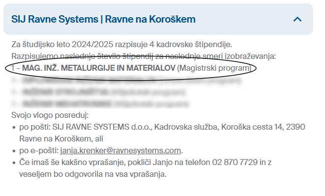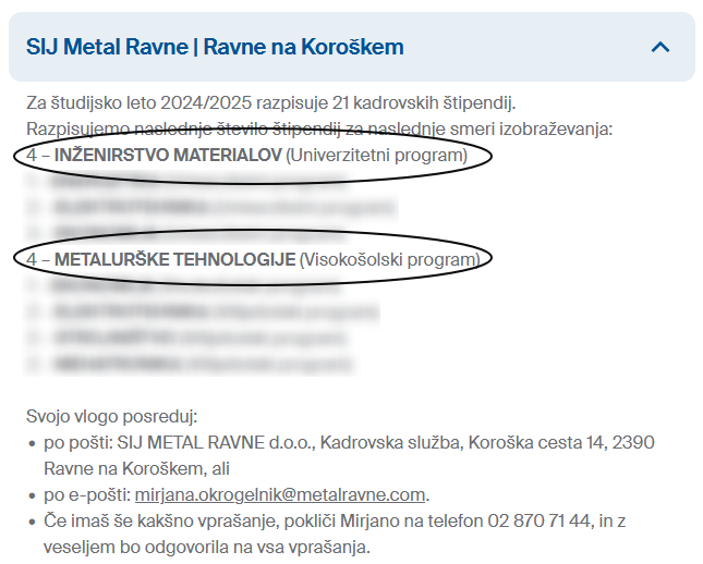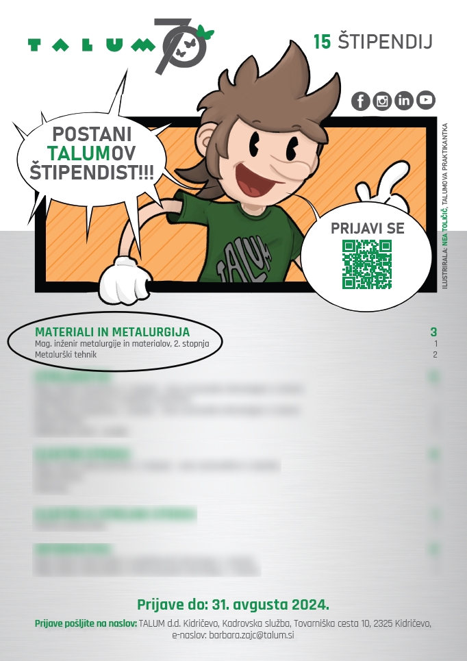 Našim študentom je na voljo veliko kadrovskih štipendij, ki jih ponujajo podjetja iz kovinsko-predelovalne industrije. Spodaj je prikazanih nekaj oglasov podjetij. Študentom priporočamo, da za točne in ažurne podatke pregledajo spletne portale podjetij ter vzpostavijo stik z relevantnimi osebami. Za pomoč pri vzpostavitvi stika se lahko obrnete tudi na nas prek elektronskega naslova omm@ntf.uni-lj.si.