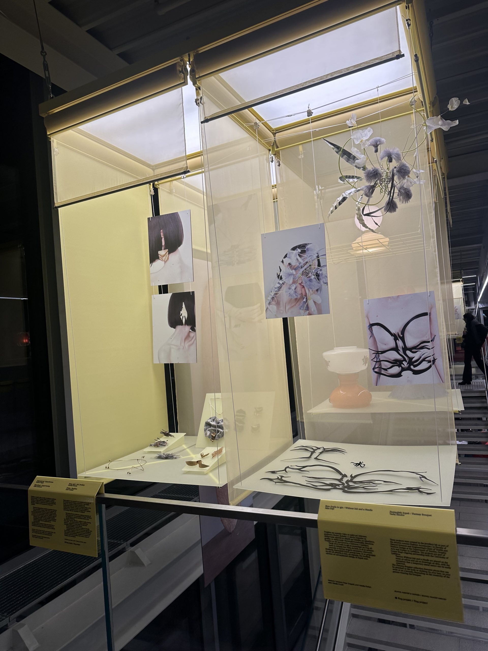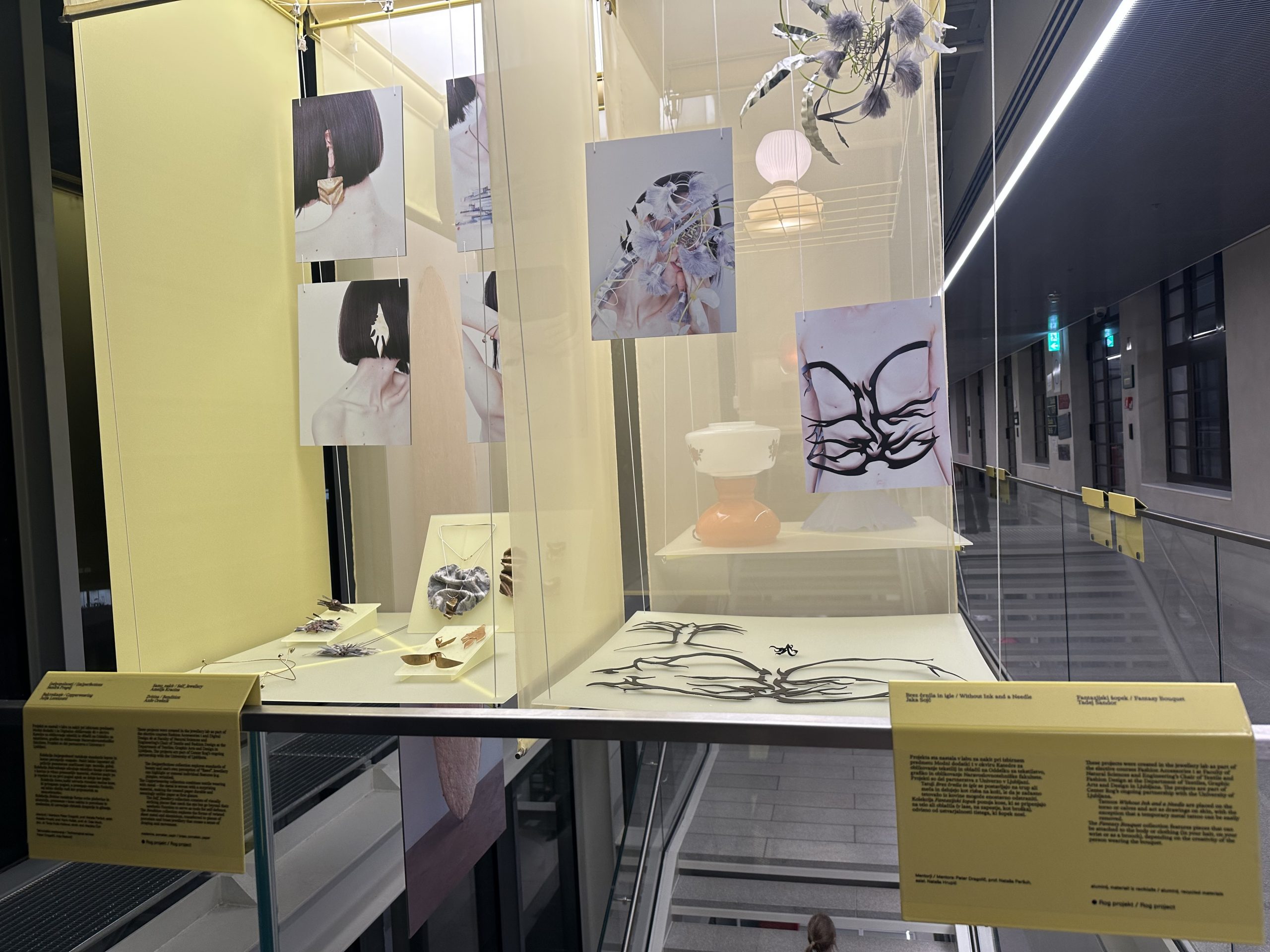 IDentiteta v nakitu je krovni naslov za predstavitev projektov, ki so nastali v labu za nakit pri izbirnem predmetu Modni dodatki 1 dodiplomskega študija Oblikovanja tekstilij in oblačil Oddelka za grafiko, tekstilstvo in oblikovanje Naravoslovnotehniške fakultete Univerze v Ljubljani, v partnerskem sodelovanju s Centrom Rog. Projekti so del obsežna razstave ROG Expo, ki skupaj z ROG Kreatonom in ROG Forumom zaokrožuje mednarodni festival Rog dizajn dnevi, ki so potekali v mesecu novembru v Centru Rog. Letošnja tema Meje in trenja raziskuje napetosti, presečišča in ustvarjalne možnosti, ki se pojavijo, ko se srečajo omejitve in nasprotujoče si silnice. Razstava ROG Expo je na ogled do 7. februarja 2026 v prostorih Centra Rog.