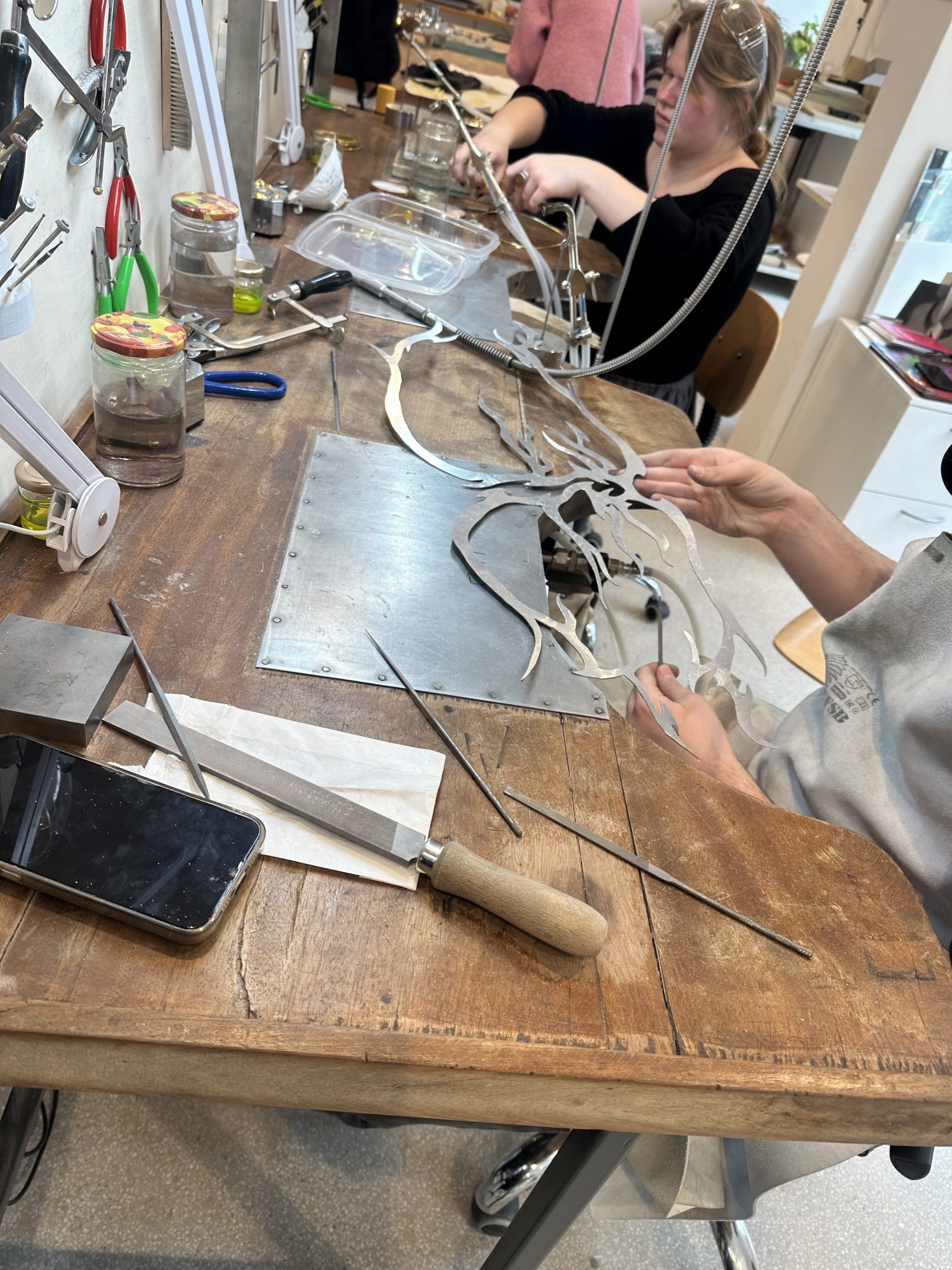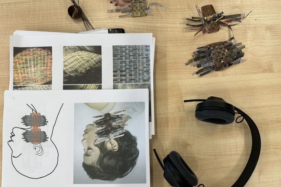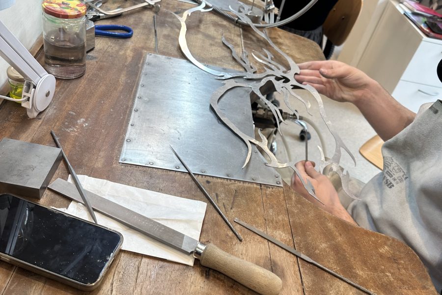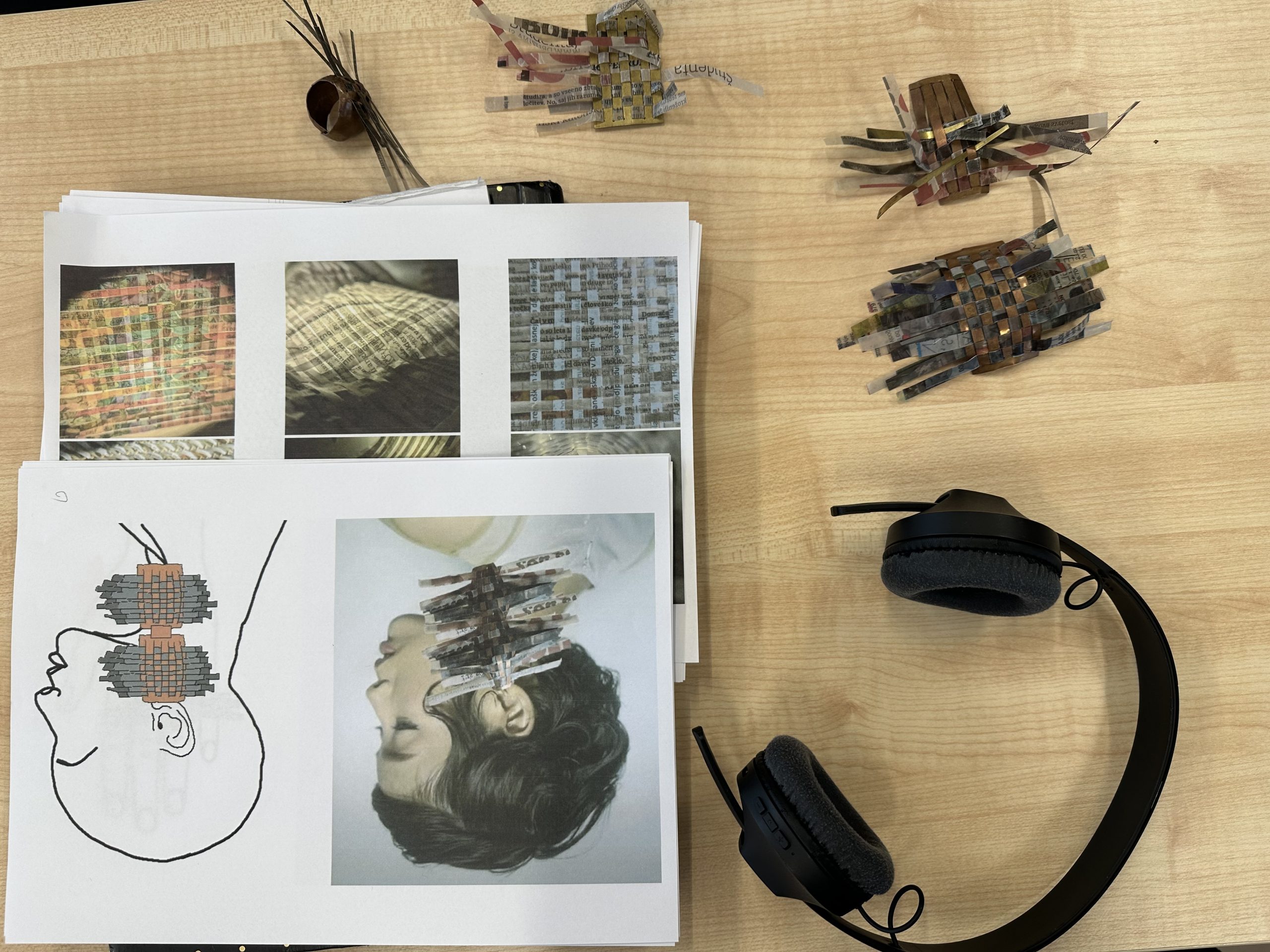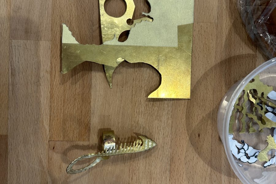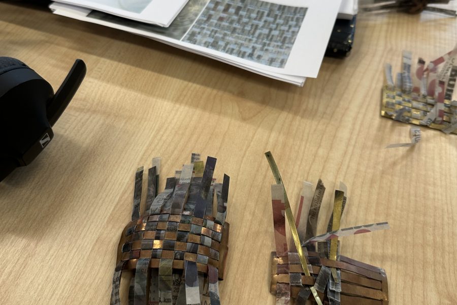 Kolekcija Bakrotkanje združuje tekstilno tkanje s kovino; v kovino je vtkan presenetljiv material, z voskom obdelan papir, ki estetsko, kompozicijsko in funkcionalno nadgrajuje kovinsko formo.