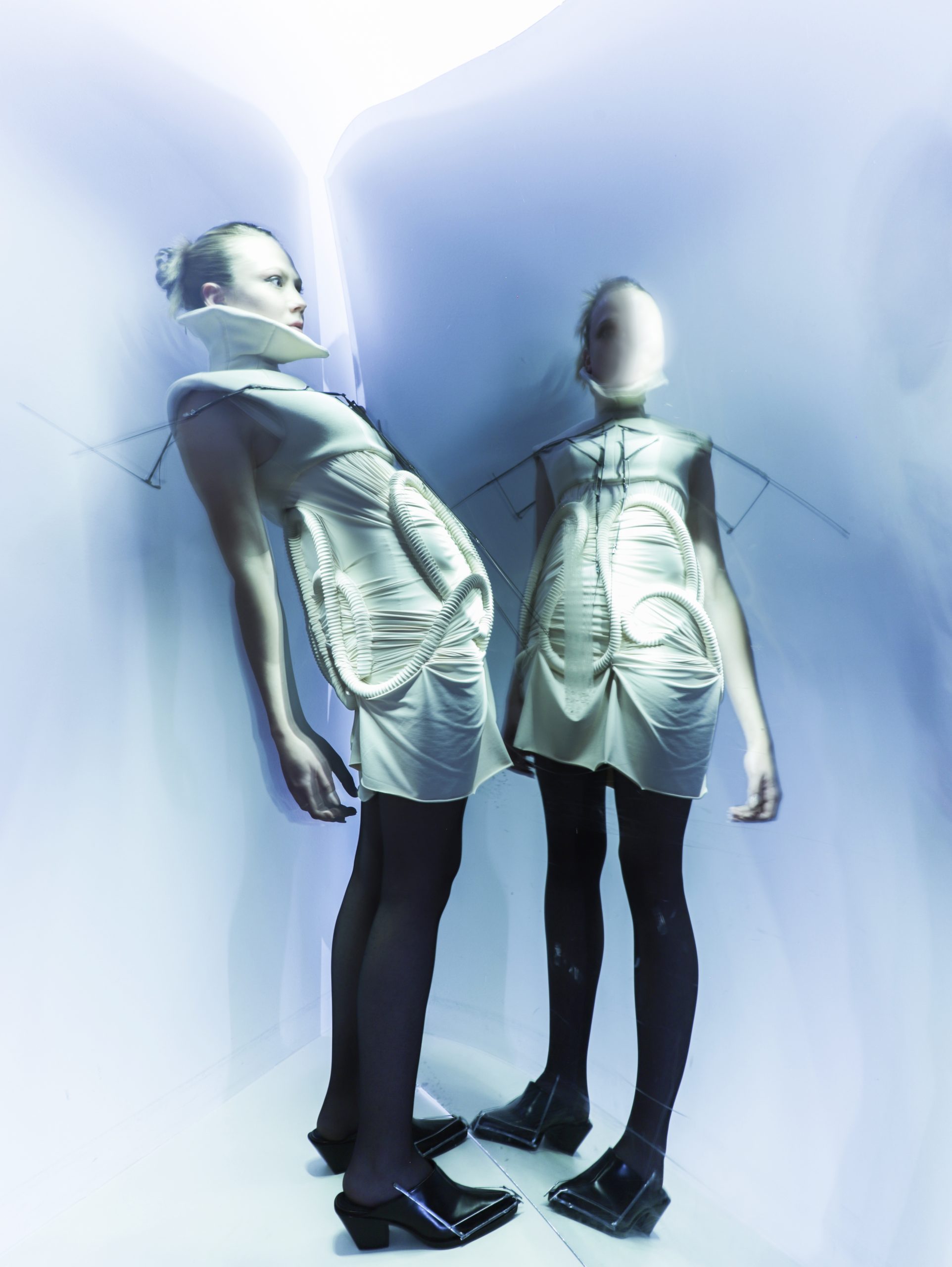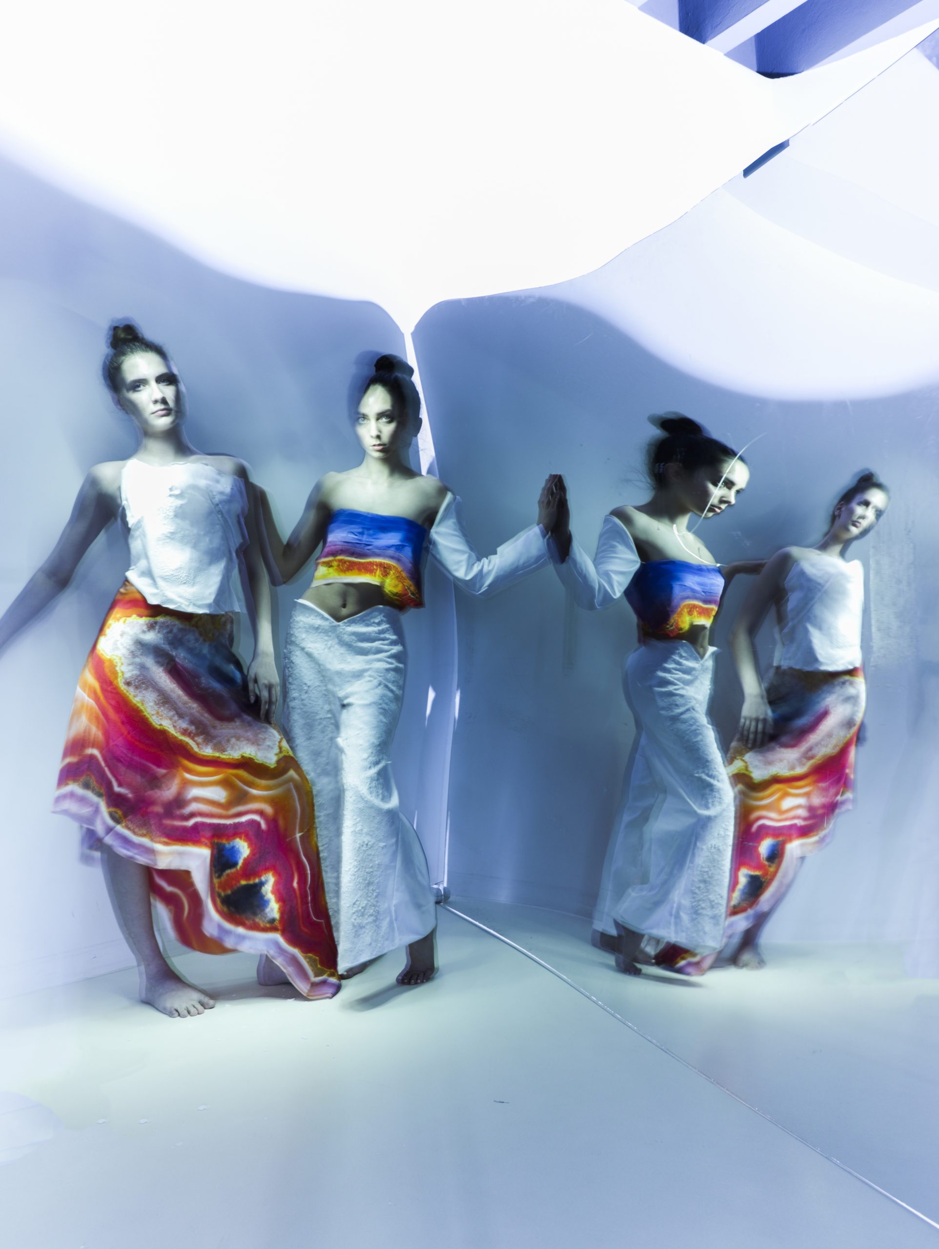 Prihodnost. Študenti 2. letnika oblikovanja tekstlij in oblačil Naravoslovnotehniške fakultete Univerze v Ljubljani so bili izzvani z interpretacijo prihodnosti. Interpretirati oblikovanje, ki ga še ni. Občutku strahu, nemoči pred neznanim, je sledilo ponotranjanje minljivosti. Obstajamo tukaj in zdaj. V sedanjosti, ki jo poznamo. V trenutku časa, ki zaznamuje spremembe na družbenem, podnebnem, tehnološkem, etičnem in kulturnem ter individualnem nivoju. Skozi proces raziskovanja in snovanja so pod mentorstvom prof. Elene Fajt in asist. Nataše Hrupić utirali pot spoznavanju področij, ki se jim zdijo ključna za razvoj in obstoj Zemlje. Njihova razmišljanja so ustvarila vizije prihodnosti.